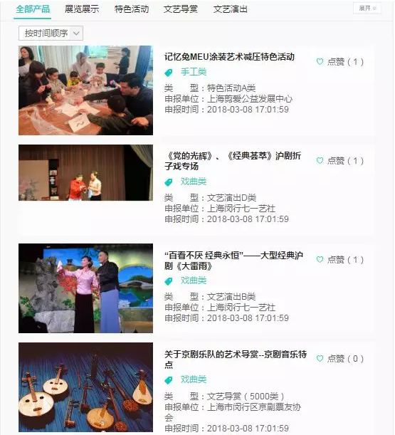 将485项文化产品全部在云平台上呈现,大家只需注册并登入“闵行文化云”,进入该功能板块后,各类产品信息即可一览无余;