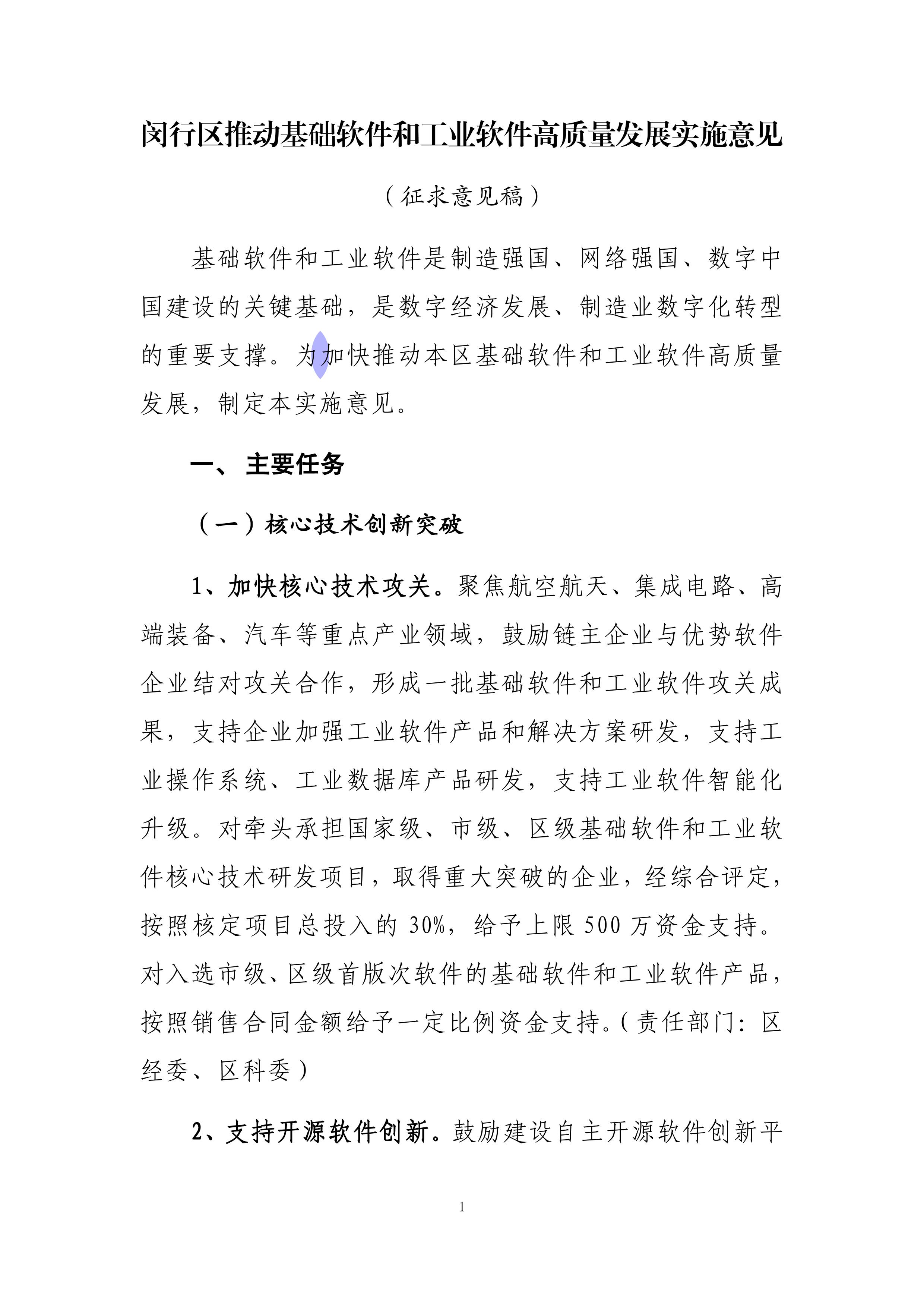关于《闵行区推动基础软件和工业软件高质量发展实施意见(征求意见稿)》
