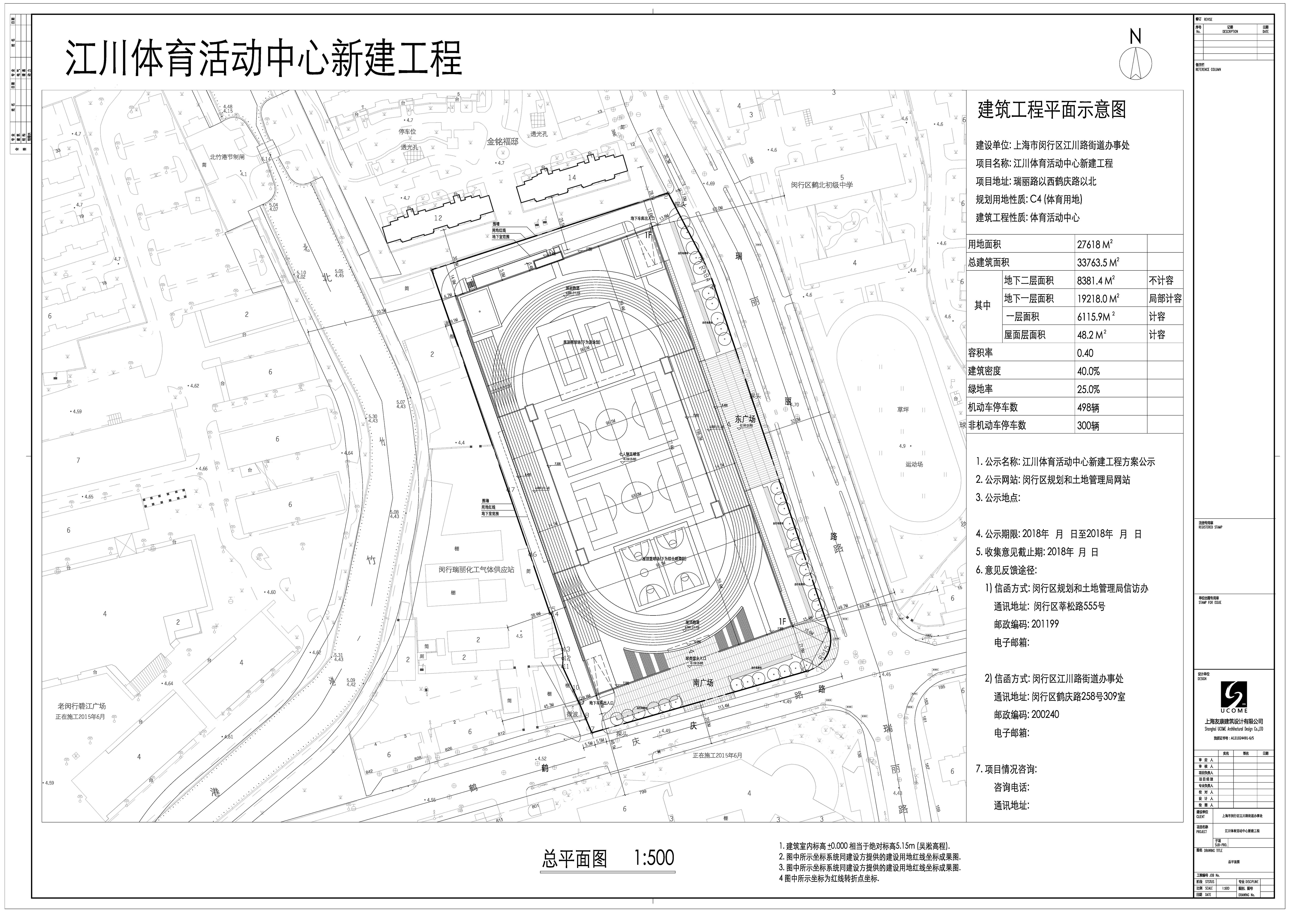 上海市闵行区江川路街道办事处送审江川体育活动中心新建工程公示(2018.08..13)