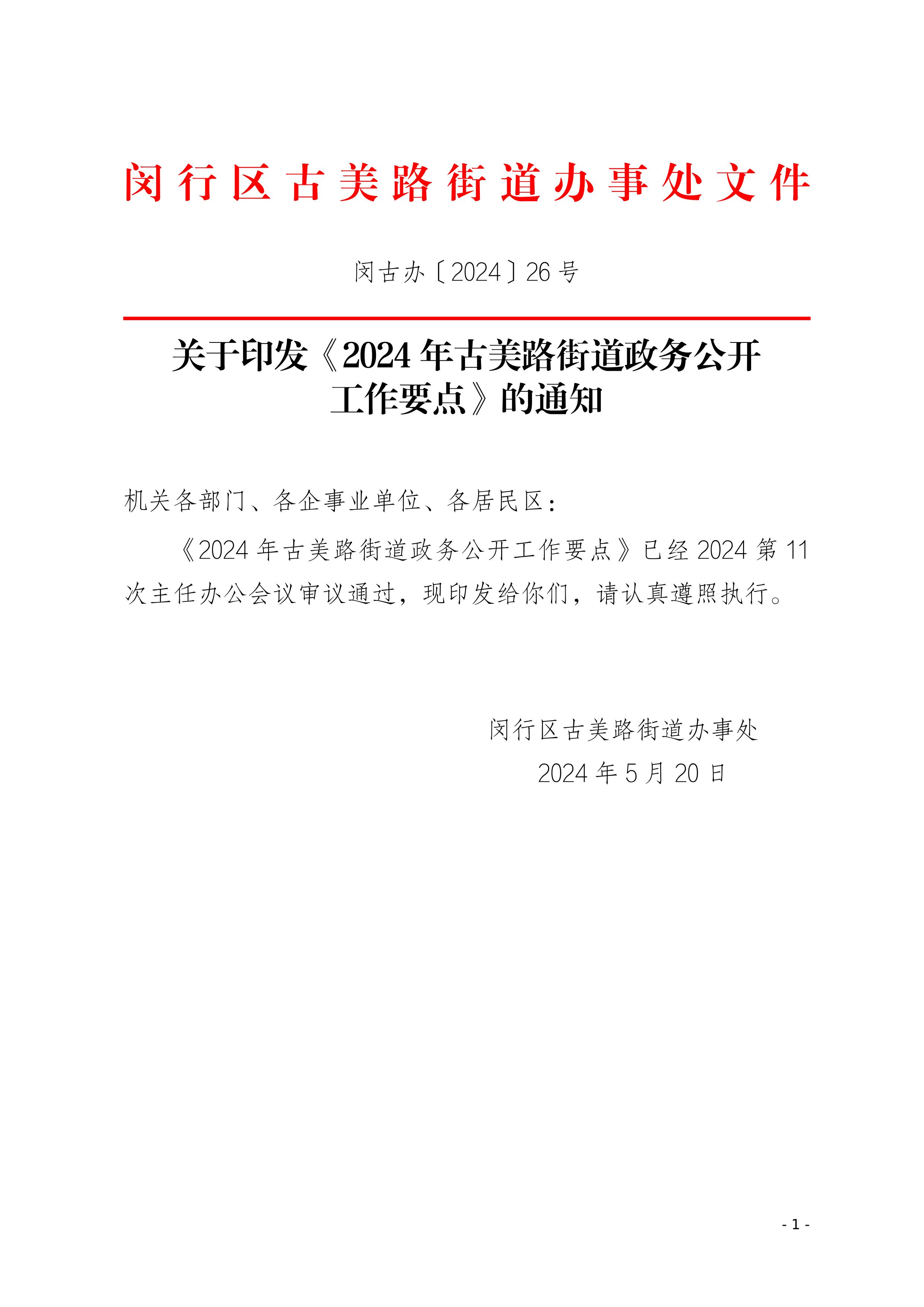 关于印发《2024年古美路街道政务公开 工作要点》的通知