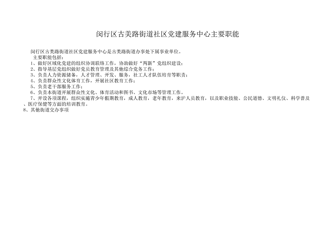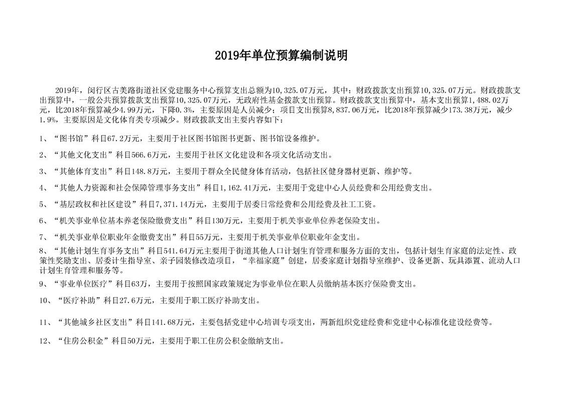 2019年闵行区古美路街道社区党建服务中心预算公开
