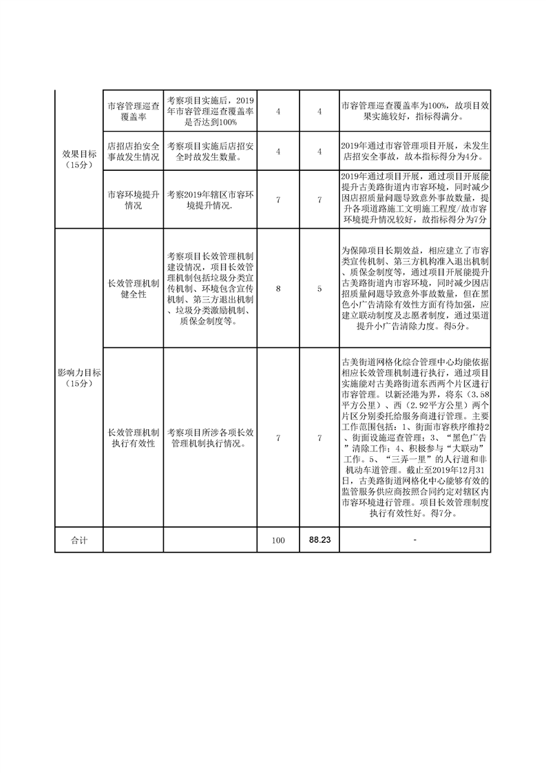2019年古美路街道市容管理项目自评价