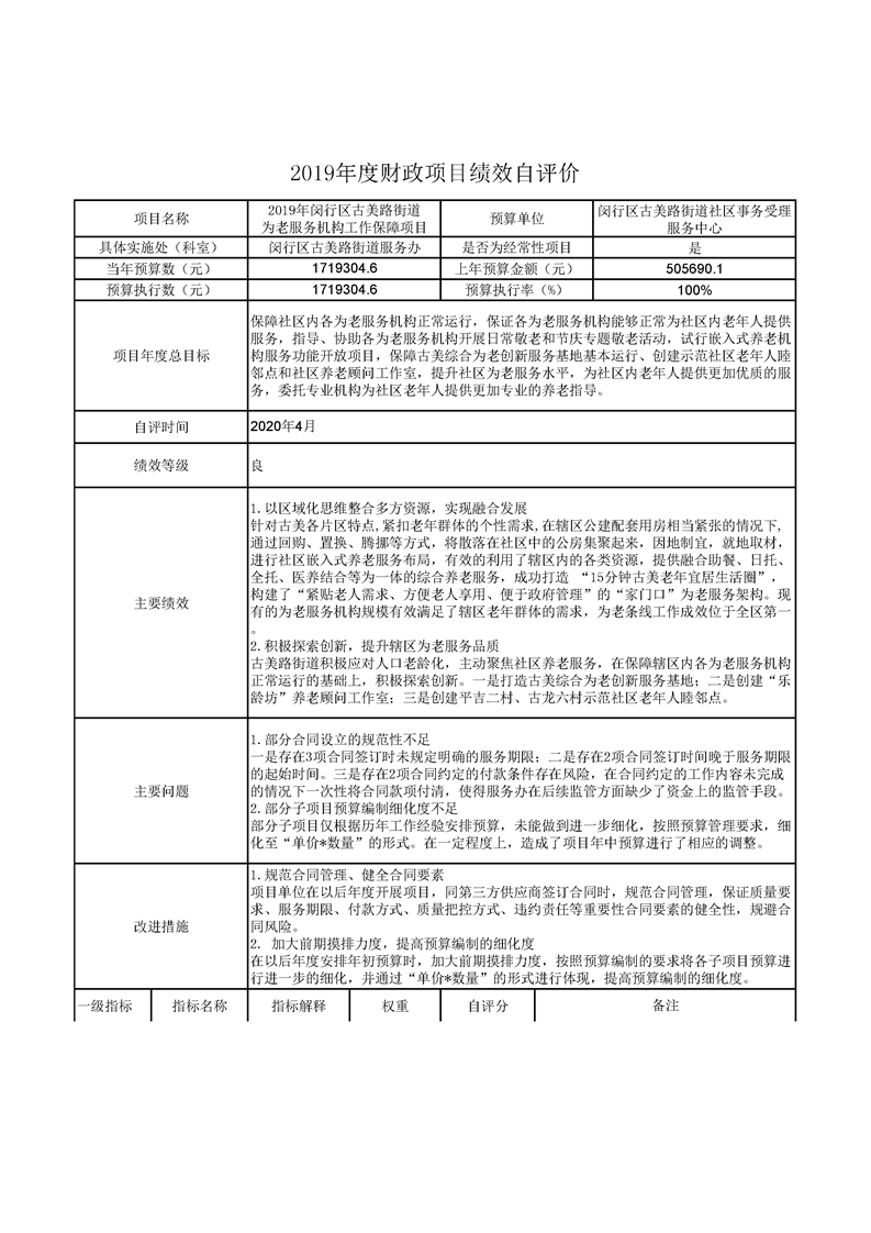 2019年闵行区古美路街道为老服务机构工作保障项目自评价