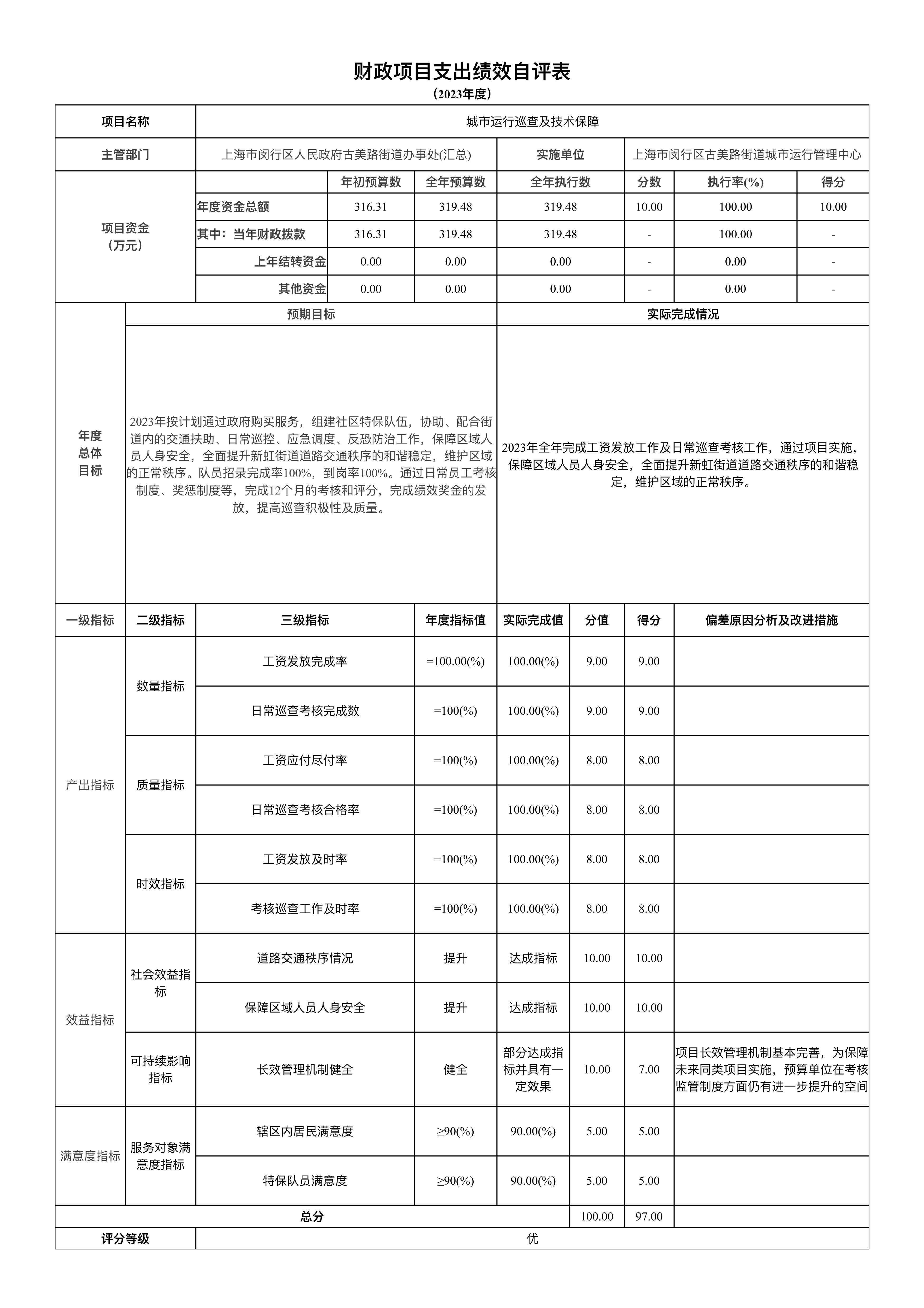 上海市闵行区古美路街道城市运行管理中心2023年度项目绩效自评表