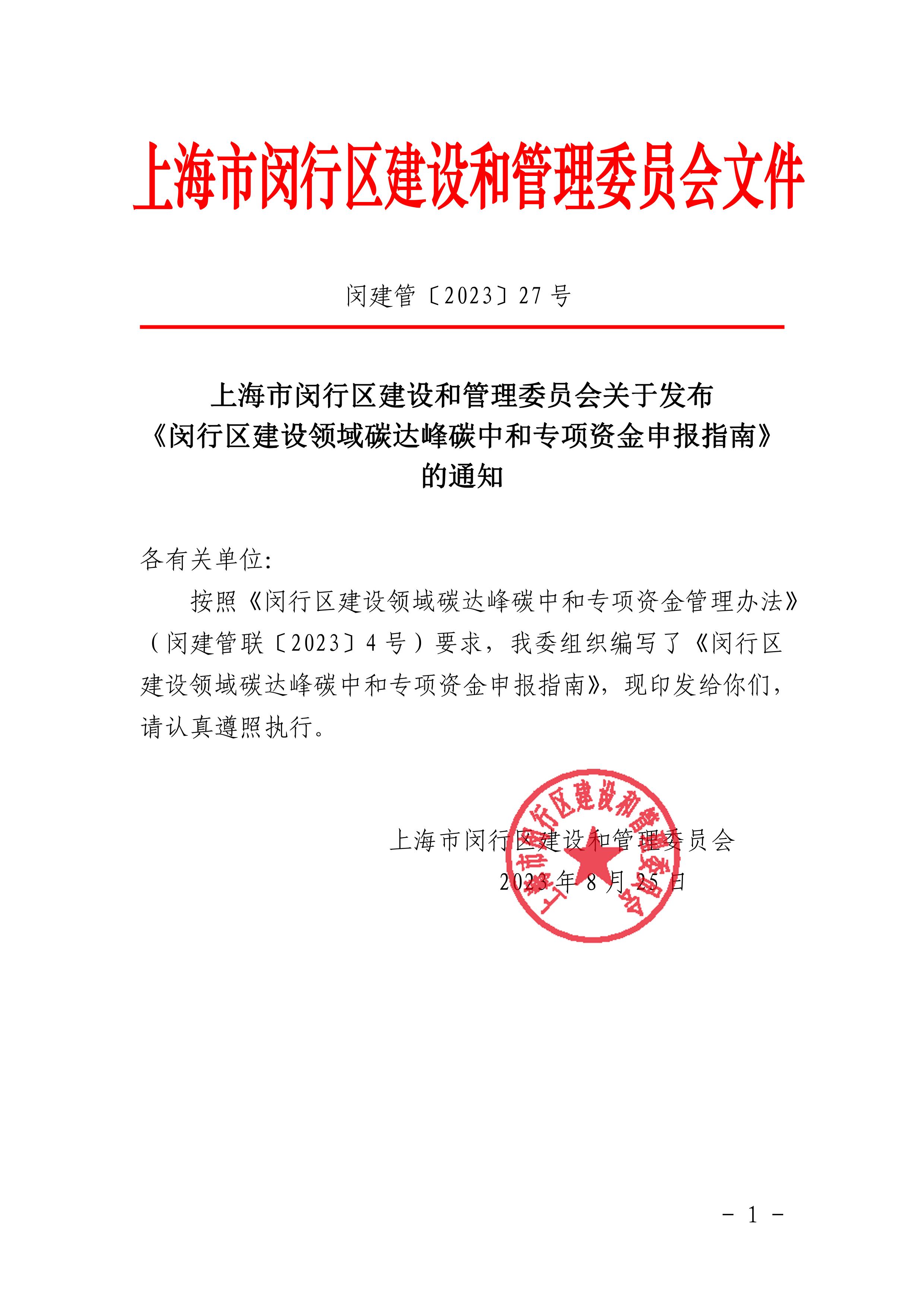 上海市闵行区建设和管理委员会关于发布《闵行区建设领域碳达峰碳中和专项资金申报指南》的通知