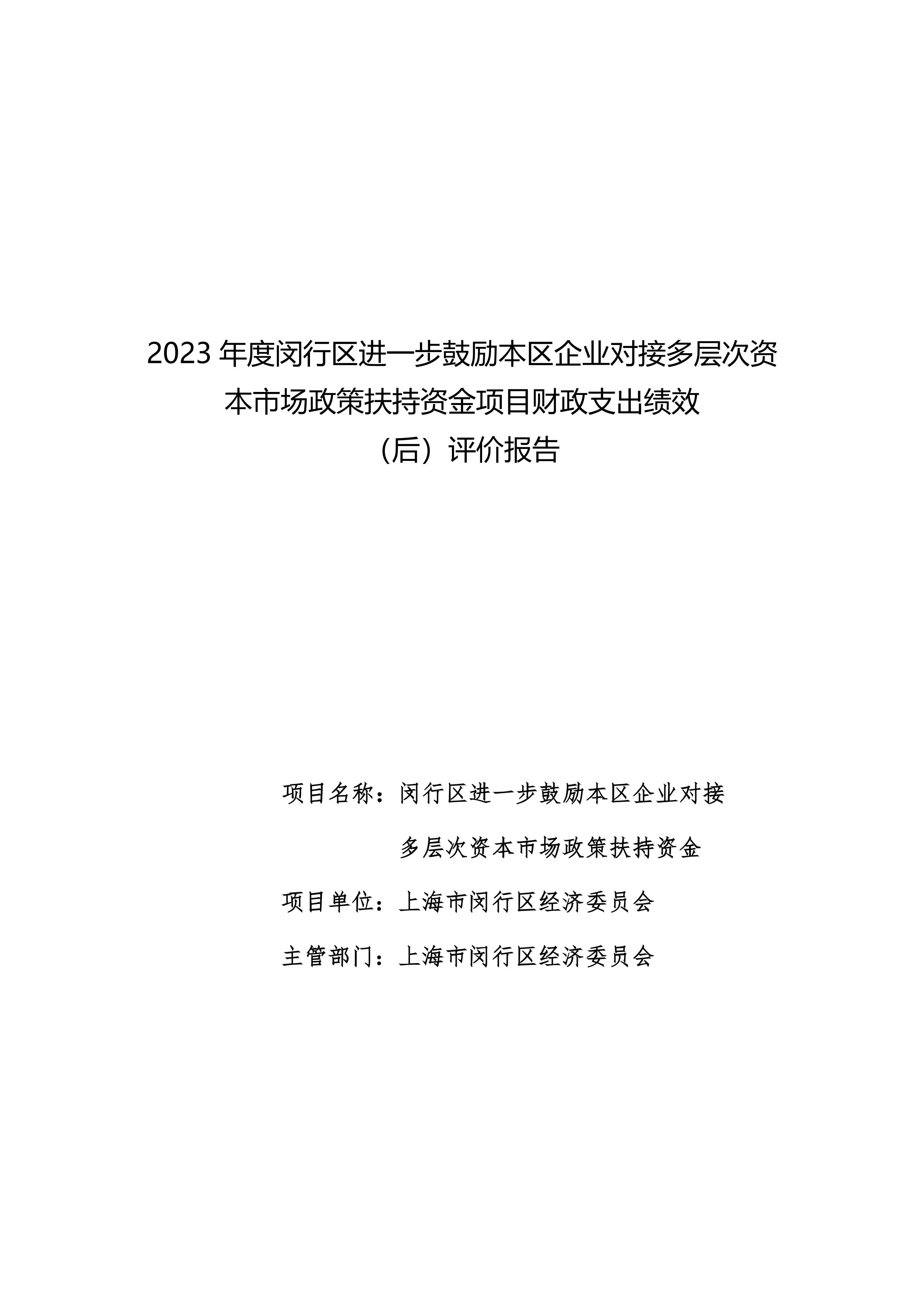 2023年度闵行区进一步鼓励本区企业对接多层次资本市场政策扶持资金项目支出绩效(后)评价报告(定稿).pdf