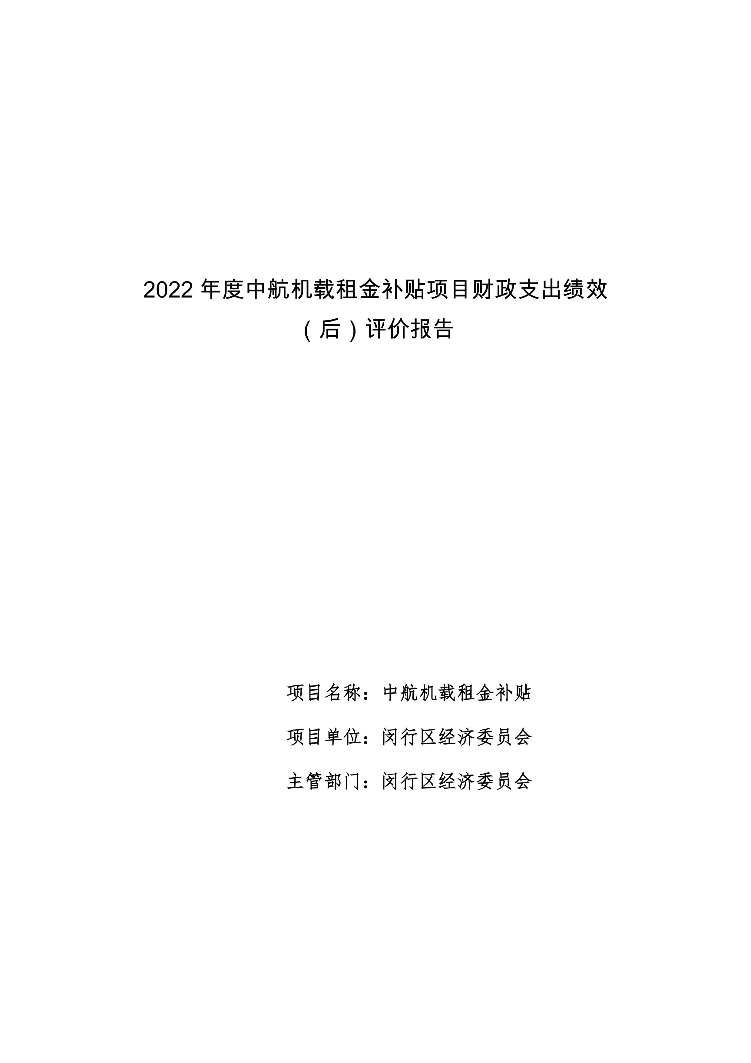 2022年度闵行区经济委员会中航机载租金补贴项目支出绩效后评价报告
