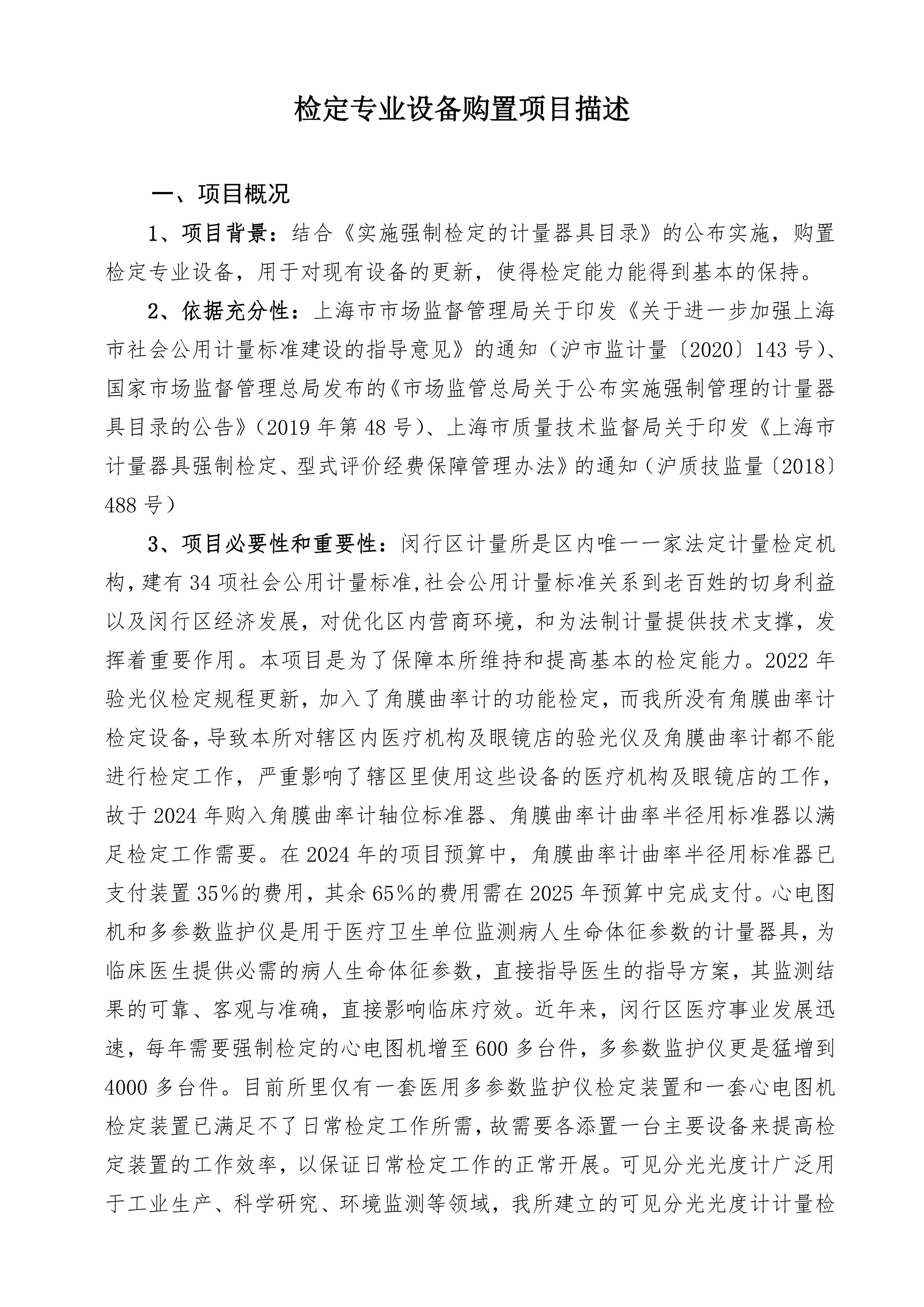 上海市闵行区计量质量检测所2025年度检定专业设备购置前评价报告