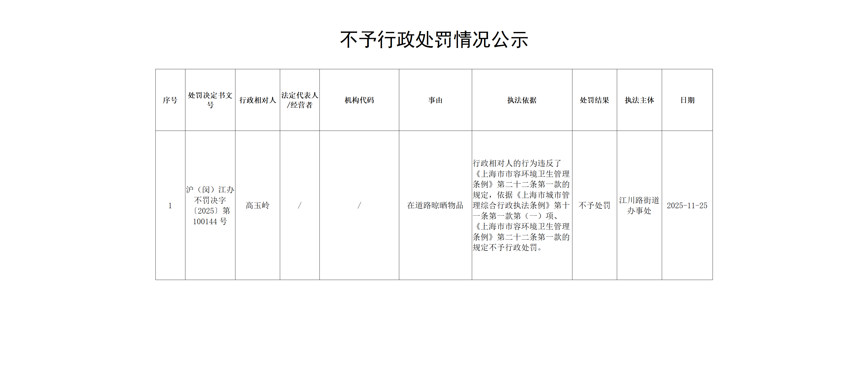 关于对行政相对人高玉岭不予行政处罚的情况公示