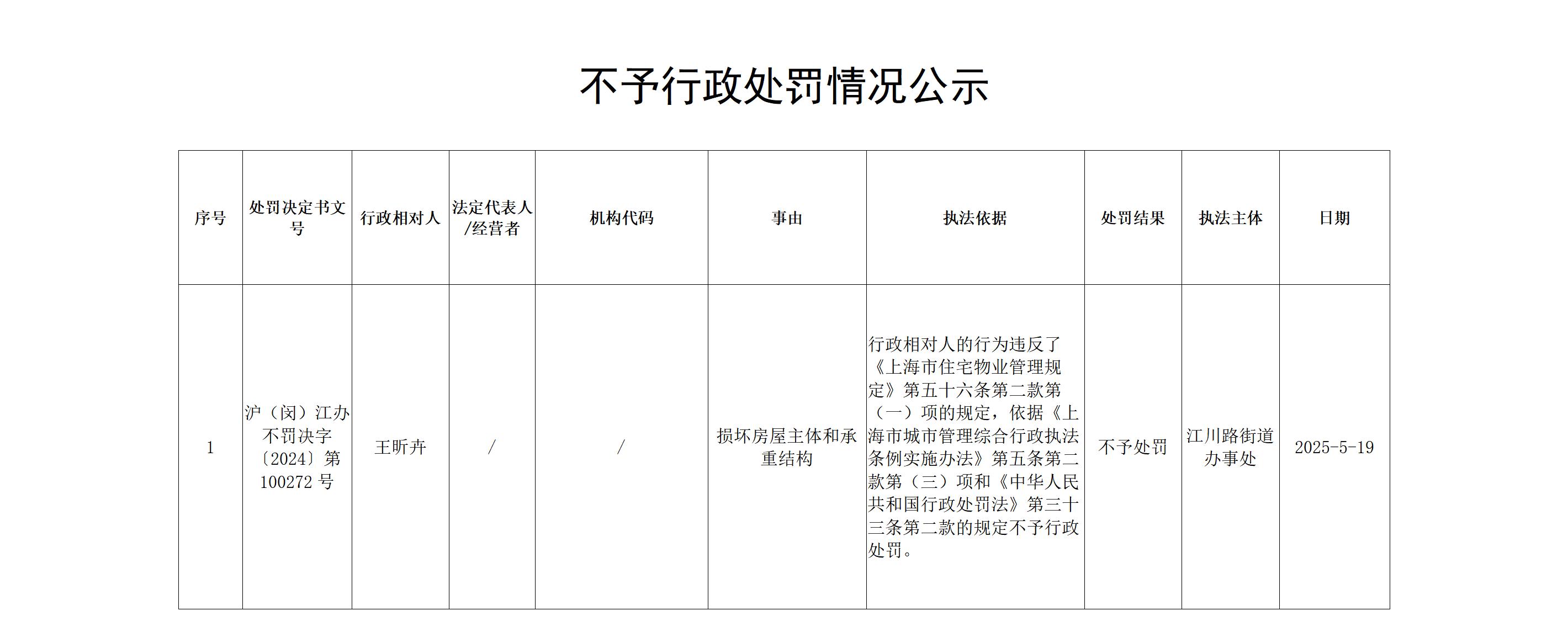 关于对行政相对人王昕卉不予行政处罚的情况公示