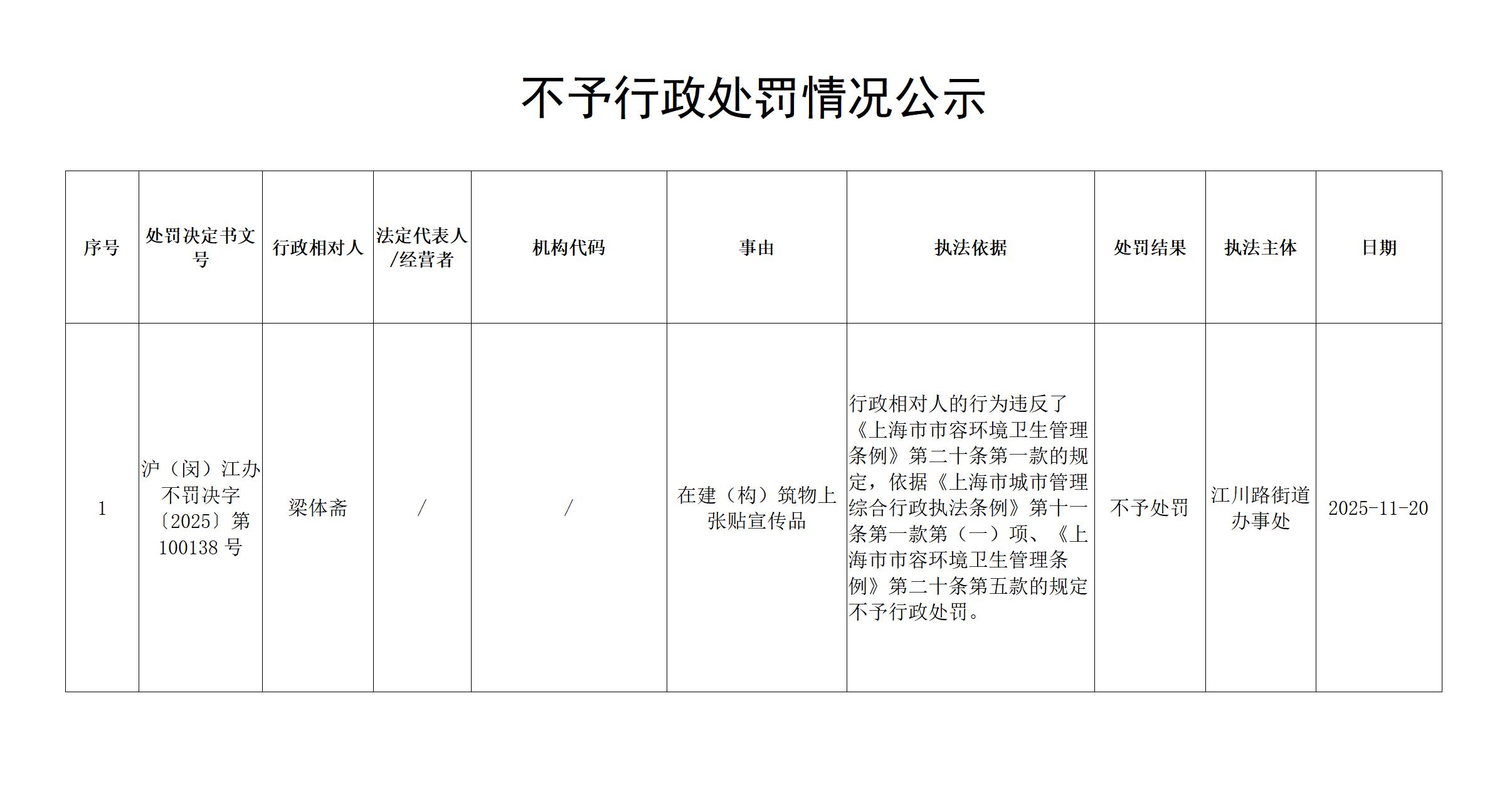 关于对行政相对人梁体斋不予行政处罚的情况公示