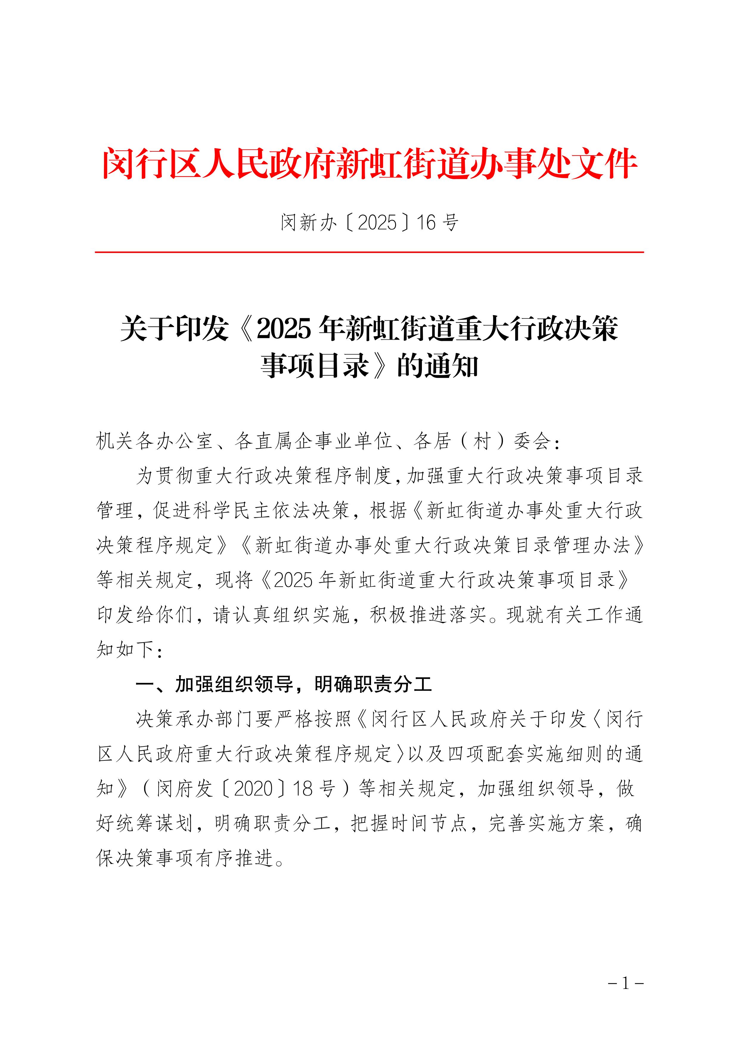 关于印发《2025年新虹街道重大行政决策事项目录》的通知